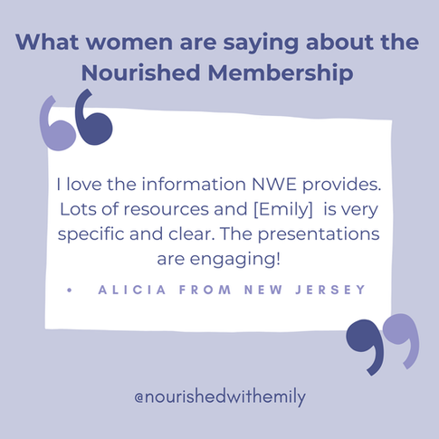 The Nourished Membership gives you the tools and support to make it happen. You’ll get simple, satisfying recipes, on-demand trainings, practical resources, and monthly live community calls with the Nourished with Emily team to ask questions, get feedback, and keep accountable to goals.